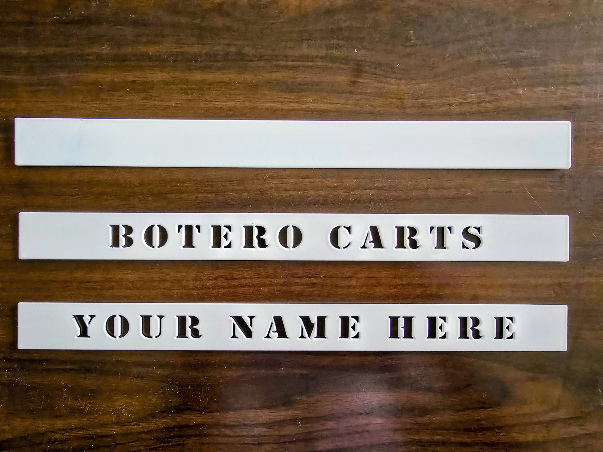 The Trunk Nameplate comes with everything needed to put on your Evolution D5 Forward facing cart. It utilizes 3M VHB double sided tape and 3M magnetic tape.